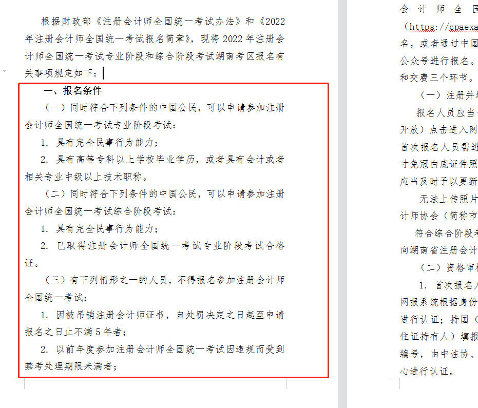 听注册会计师CPA在线课程可以帮助我们理解知识点,老师在课堂上讲的一些案例很容易理解,一看就会,偶尔也会讲几个例子,可以贯穿知识点。听完在线课,你可以再总结一下重点,做上面的问题,这样学习一个知识点就会引出一个知识点,一步一个脚印,打下坚实的基础,也为以后刷题省了不少力气。上考教育根据湖南注册会计师协会官网发布的2022年注册会计师报考简章中了解到,湖南省注册会计师今年的报考条件主要有以下三项: