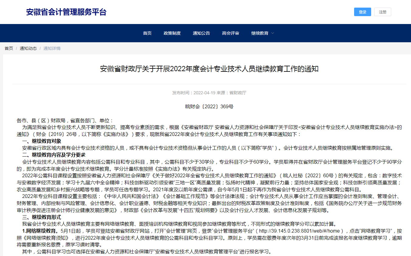 安徽省财政厅关于开展2022年度会计专业技术人员继续教育工作的通知