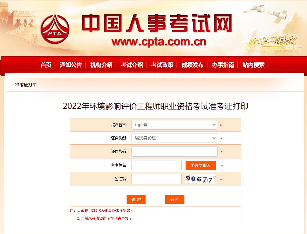 上考教育从中国人事考试网获悉,2022年环评工程师准考证打印入口(http://zg.cpta.com.cn/examfront/admission/initfind.htm)已经开通,已经报名成功的学员可以进入官网在本省规定的时间内网上下载打印准考证,每个地区的打印时间是不一样的,具体看各个地区的人事官网公告,以下就是本次公告的详细内容: