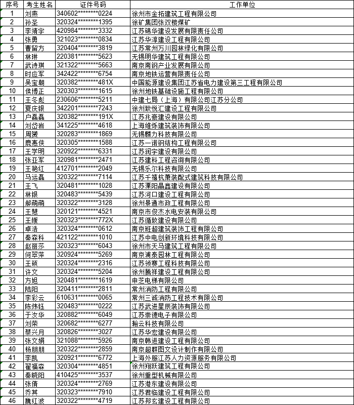 2022年度江苏省二级建造师资格考试合格人员名单公示,共计40801人