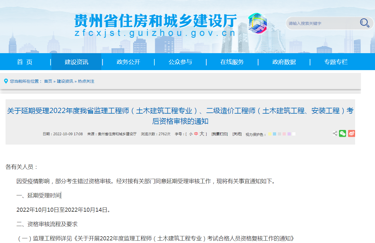 (二)二级造价工程师详见《关于开展2022年度贵州省二级造价工程师资格审查的公告》(http://rst.guizhou.gov.cn/xwzx/gggs/202208/t20220804_75949659.html)