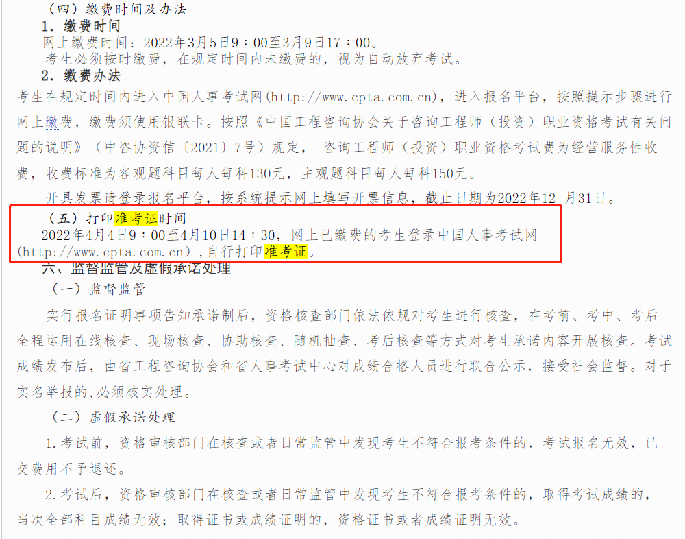 应试人员须在2022年4月4日9﹕00至4月10日14﹕30期间登录中国人事考试网打印准考证。