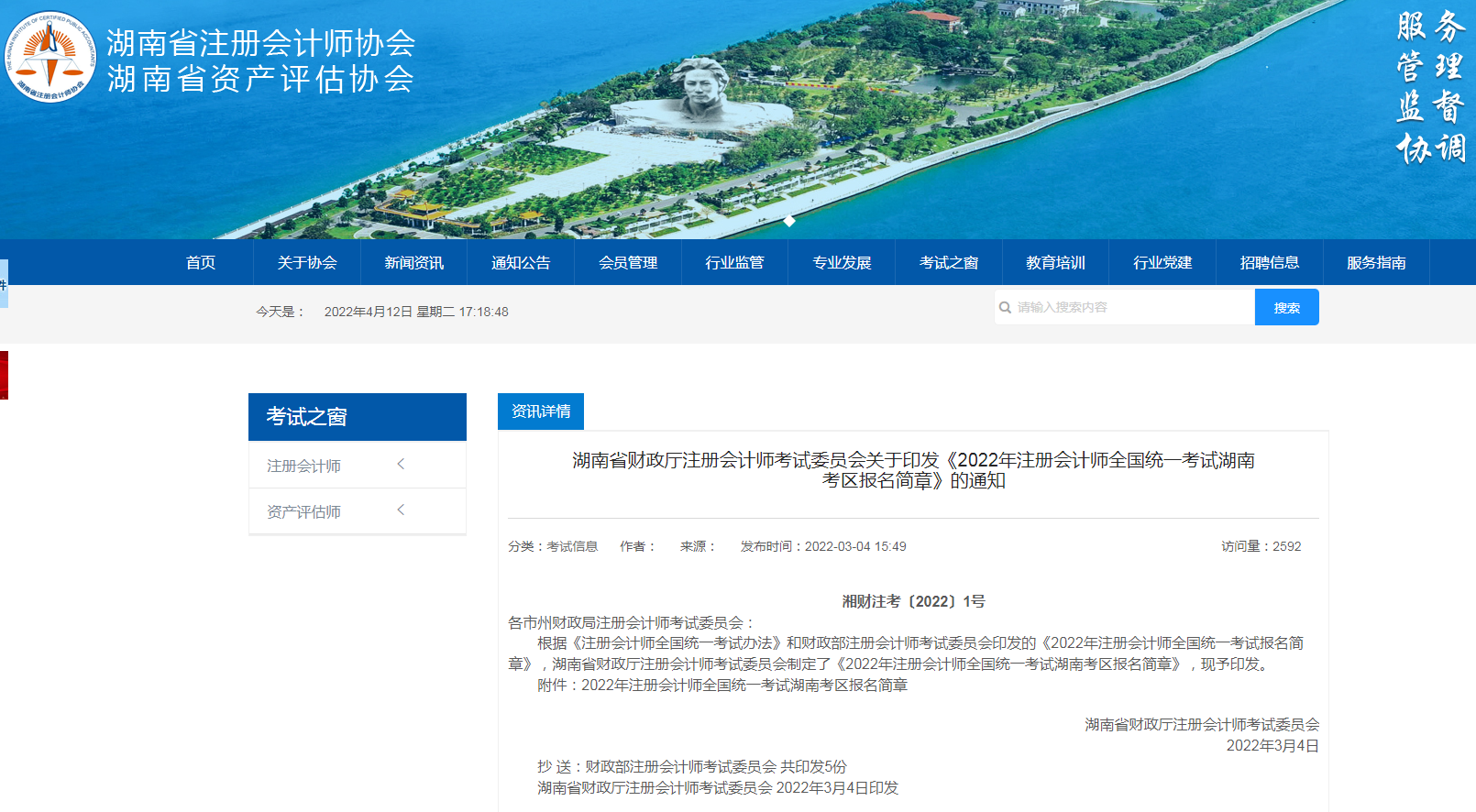 根据财政部《注册会计师全国统一考试办法》和《2022年注册会计师全国统一考试报名简章》,现将2022年注册会计师全国统一考试专业阶段和综合阶段考试湖南考区报名有关事项规定如下: