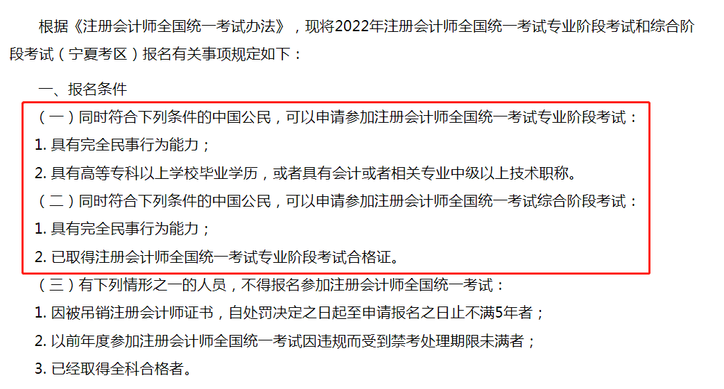 一般建议不要因注册会计师CPA考试而辞职,现在找工作很难,注会是晋升的热门选择,也是有一定的难度,辞职并充分准备考试,谁也不能保证会通过考试,工作经验的积累也是一个很重要的方面,辞职等于切断生计,照顾家庭和抚养孩子,负担之重可想而知,建议候选人在不辞职的情况下,合理安排准备时间,如果缺乏时间和精力,可以提前准备考试,适当延长准备时间。上考教育根据宁夏注册会计师协会官网了解到,2022年宁夏注册会计师CPA报考条件主要有以下三个方面: